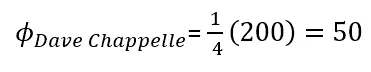 Dave Chappelle’s Shapley value, the average contribution he had in every round, was 50. Makes sense if we check, every difference of value between set S and set S + Chappelle was exactly that.