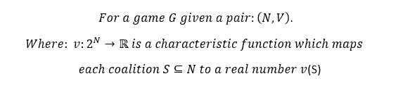 We will have coalitions of players participating called S, which will be a subgroup of N. In each round a subgroup of all possible players will obtain a value V(s), in this case, sales.